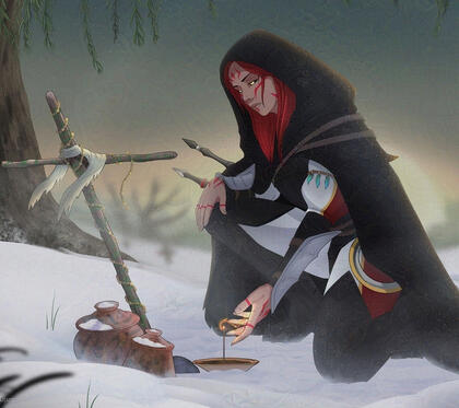her right foot, she shoved aside some snow, revealing a dark mist, that had been hiding below the layer of white icy fascination."What by the gods-" Kai was startled for a moment, when the mist escaped her watchful eyes, hiding further away in the knee-high mass of winter snow. Did it react to her? Did it see her!?"Judging by your confused noises and words, you have no good news to share, I assume?" Nowaki was standing back-to-back with Kai, watching over the space in front of her."I would not say that I understand what I saw, but I would go as long as to say, that we are in trouble." Kai answered, hearing Nowaki growling and sparks of her fire weaving crackling in the air, breaking the unnerving silence."Do you hear that?" Kai asked.